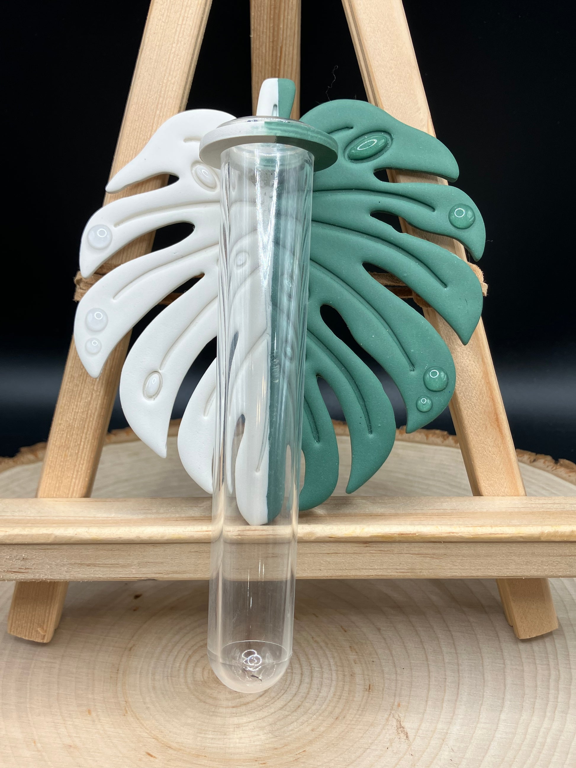Handmade polymer clay propagation station. Includes one plastic propagation tube. Approximately 4 inches wide and 6 inches long including the hanging tube. Backs are supported with two 1inch magnets. Also available by request with a small drilled hole for wall hanging. (Make note at checkout.)