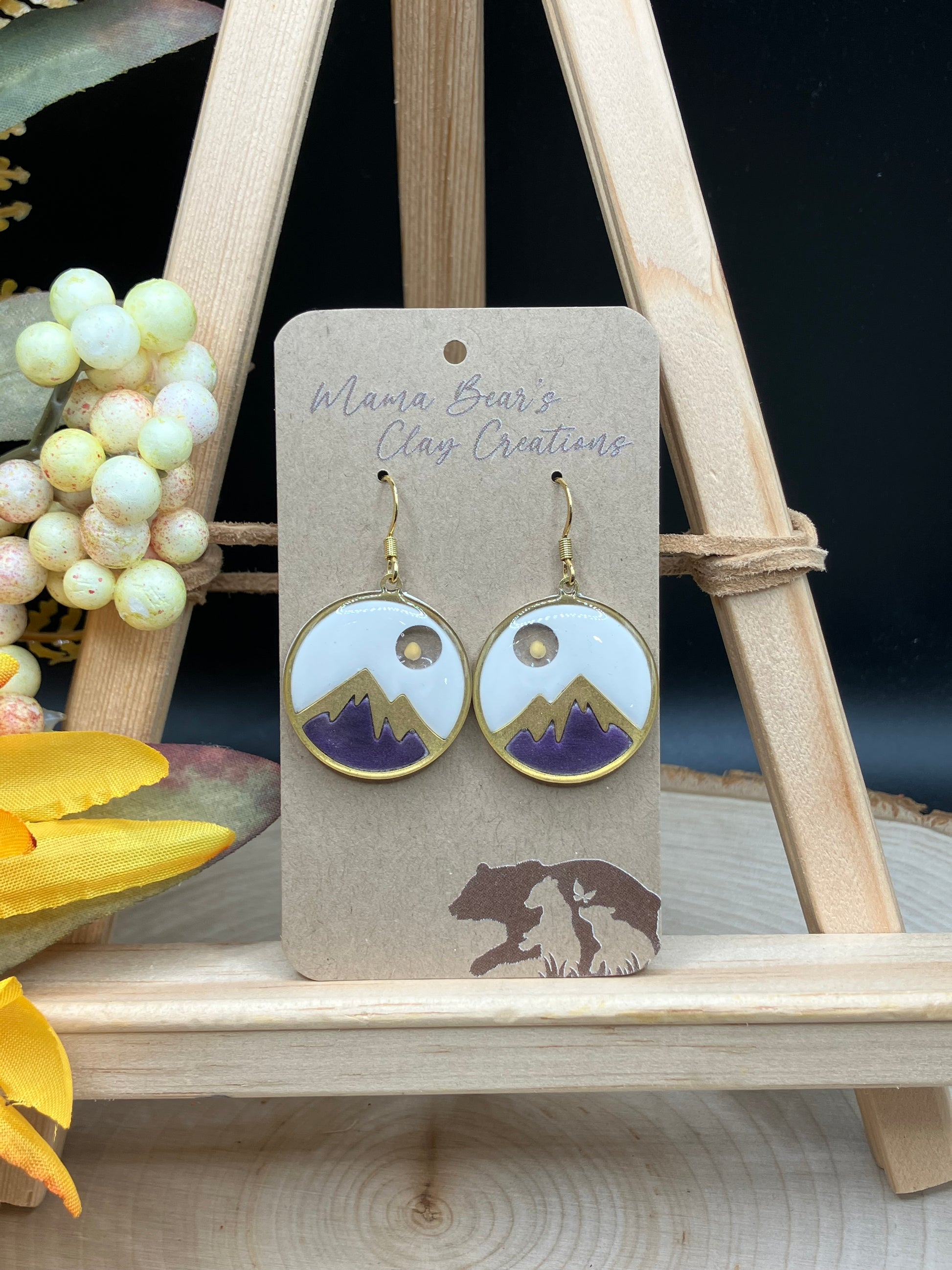 Brass bezel with metallic shimmer mountain. Real embedded mustard seed design. Topped with resin for high gloss shine. Gold plated findings. 1.5” complete.