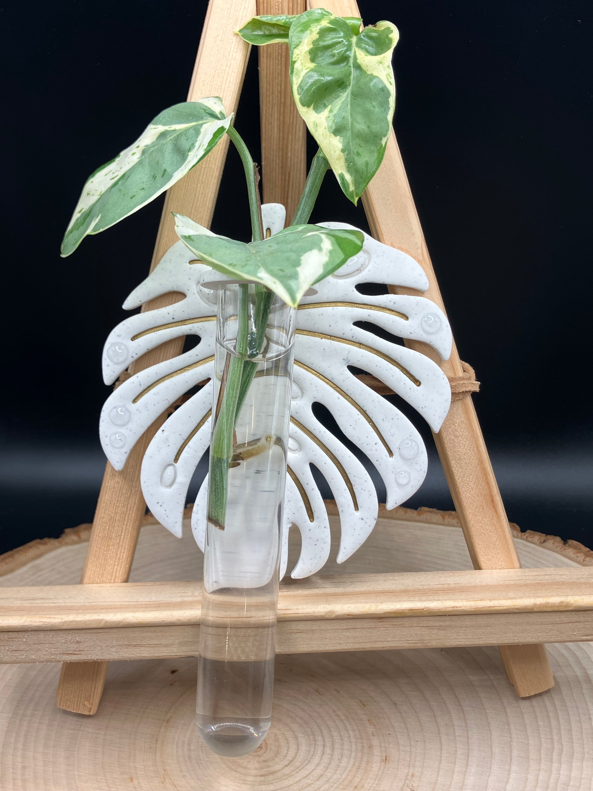 White w/Gold Inlay Monstera Leaf Propagation Station